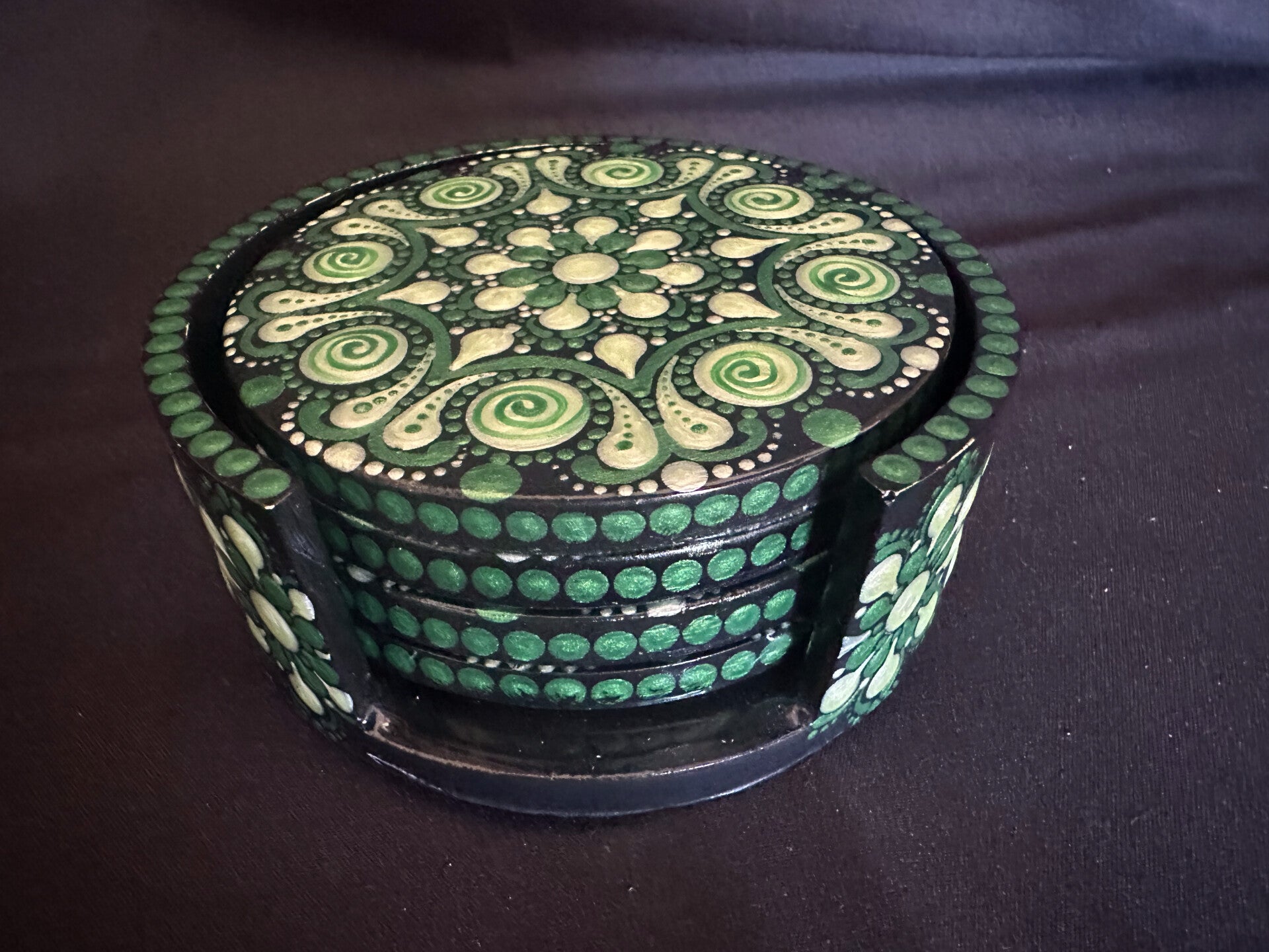 Sous-verres verts x 4 et leur boîte de rangement "Peintures Précieuses"