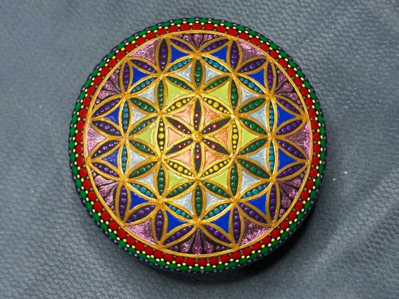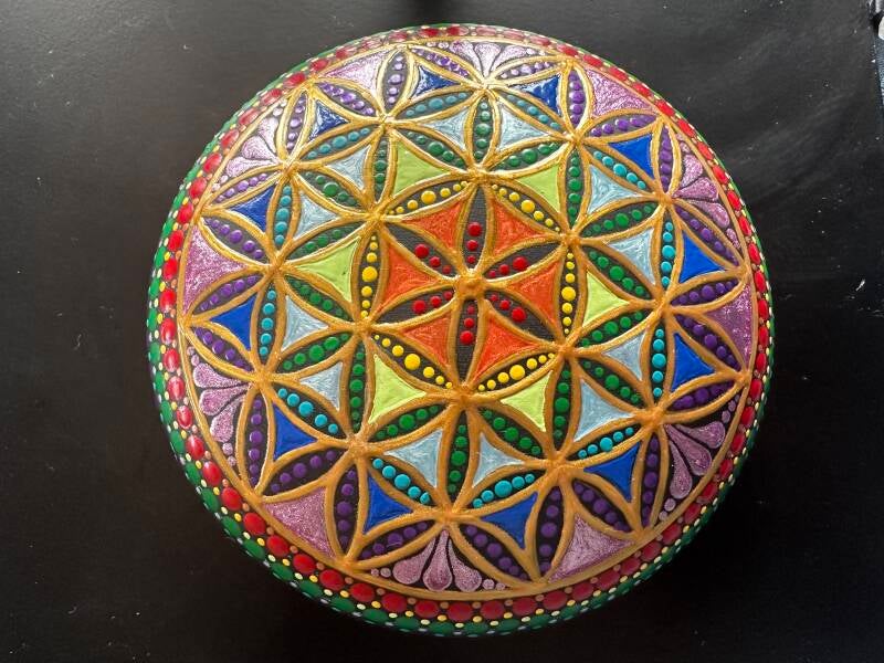 Pierre de Méditation - Grand modèle 12 cm - Fleur de vie multicolore