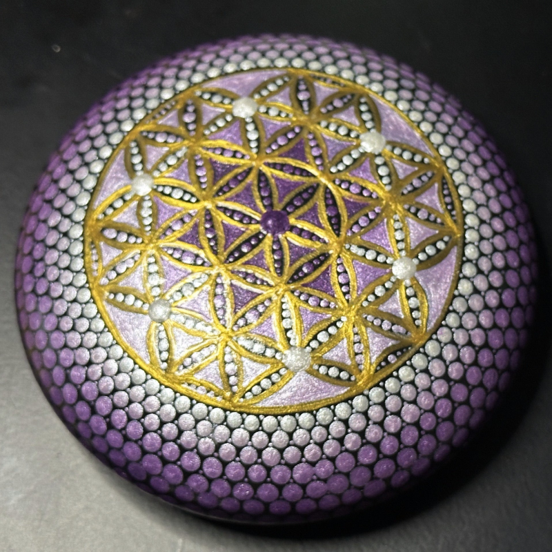 Pierre de méditation - Moyen modèle 10 cm - fleur de vie rose/violette