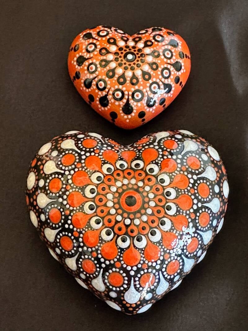 Pierre de réconfort. Mini cœur 5x5 cm noir et blanc sur fond orange